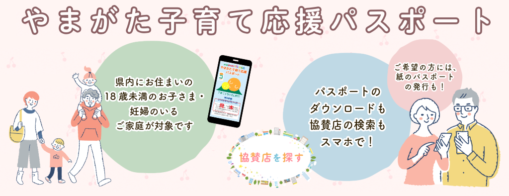 協賛店で様々なサービスを受けられる「やまがた子育て応援パスポート」。